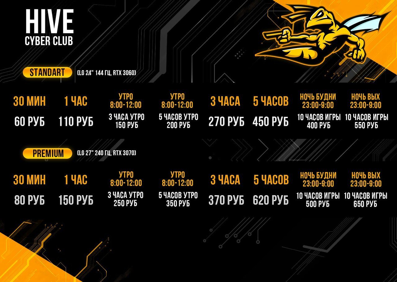 Устал платить больше, тебе в Hive Cyber Club, RTX 3060 и RTX 3070 ждут тебя, от 40р час. При условии покупки пакетов ночь или утро 5 часов на компьютерах класса Standart.